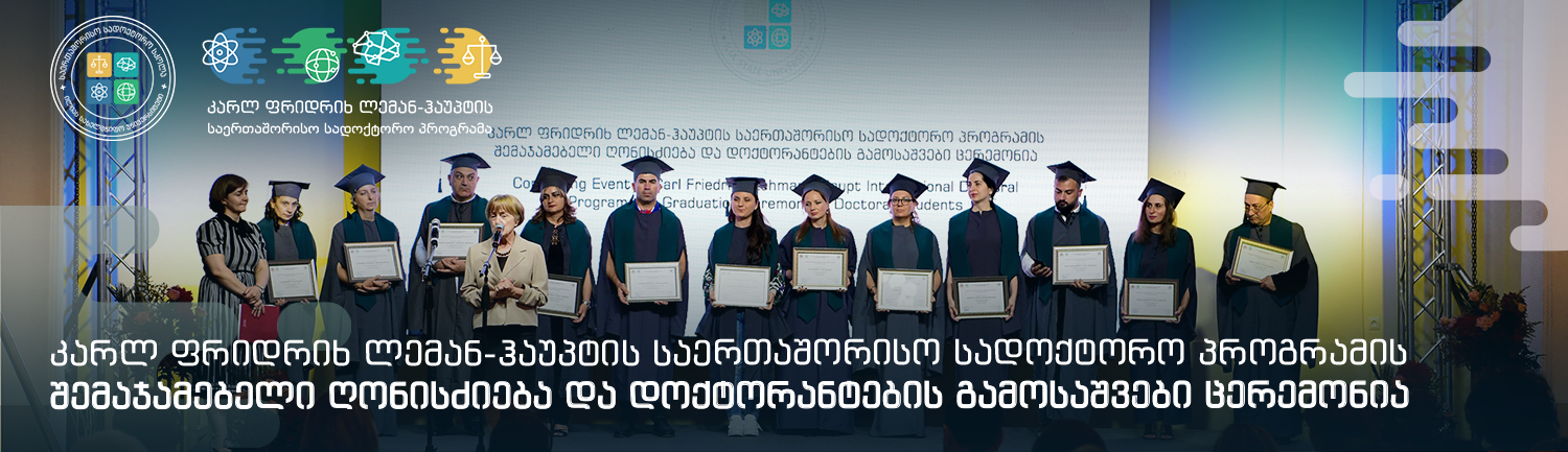 5 ოქტომბერს ილიას სახელმწიფო უნივერსიტეტში კარლ ფრიდრიხ ლემან-ჰაუპტის საერთაშორისო სადოქტორო პროგრამის* შემაჯამებელი ღონისძიების ფარგლებში, ილიას სახელმწიფო უნივერსიტეტის საერთაშორისო სადოქტორო სკოლის** ეგიდით, სადოქტორო პროგრამების კურსდამთავრებულების გამოსაშვები ცერემონია გაიმართა.